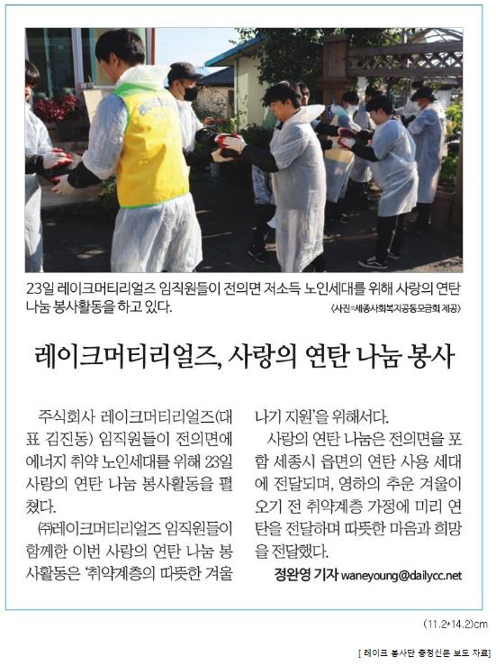 ‘레이크 봉사단’ 에너지 취약 어르신들을 위한 따뜻한 손길을 전하다!