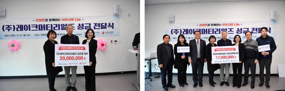 임직원들이 기부한 기부금은 전의면 관내 소외계층 지원을 위한 복지 사업에 쓰일 예정입니다.